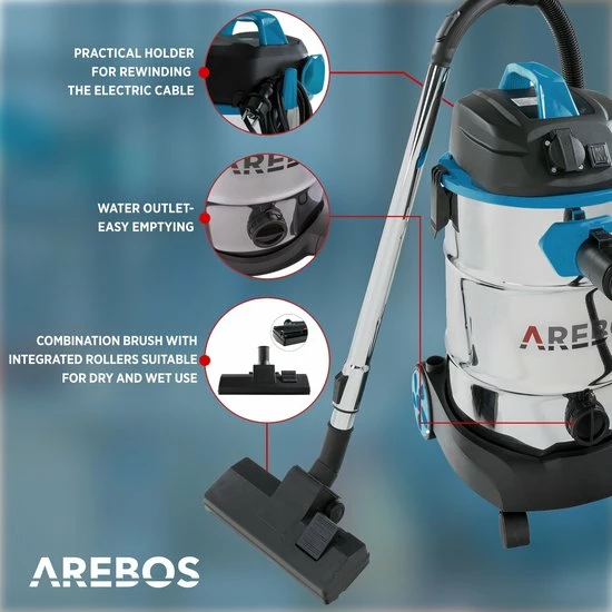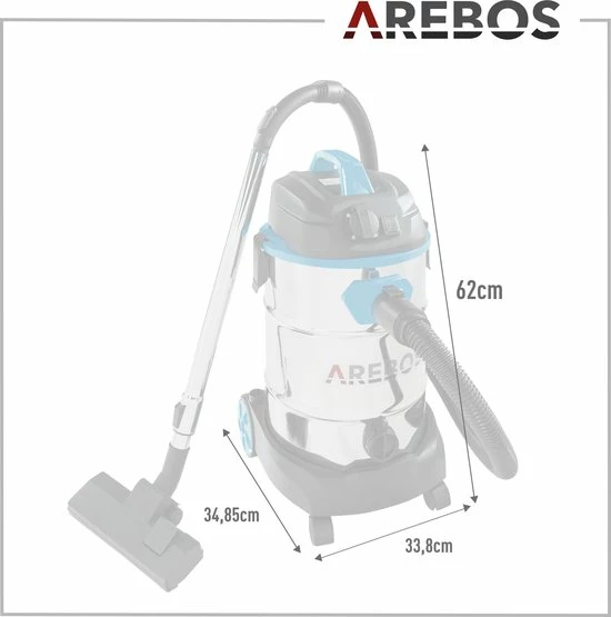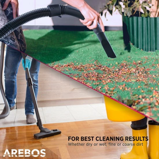 Wanneer u het apparaat als natte stofzuiger gebruikt, beschermt een tweede schuimfilter de motor tegen vuil. De AREBOS nat & droog stofzuiger wordt geleverd met een breed scala van accessoires, bijvoorbeeld een schuimfilter voor nat zuigen, een vouwfilterโฏvoor het opzuigen van stof, eenโฏcombinatiemondstukโฏvoor tapijt en gladde oppervlakken, en een spleetmondstuk voor nauwe, moeilijk bereikbare plekken.