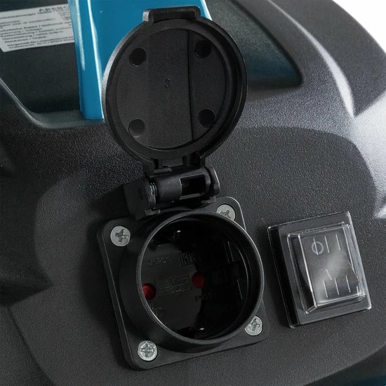 Stopcontact met automatisch aan- en uitsysteem. Als u een elektrisch apparaat aansluit, kunt u het vuil op het moment van ontstaan opruimen. Het nuttige extra stopcontact op de stofzuiger geeft de mogelijkheid er boormachines, slijpschijven, zagen en dergelijke op aan te sluiten tot een maximaal vermogen van 1000 W.
