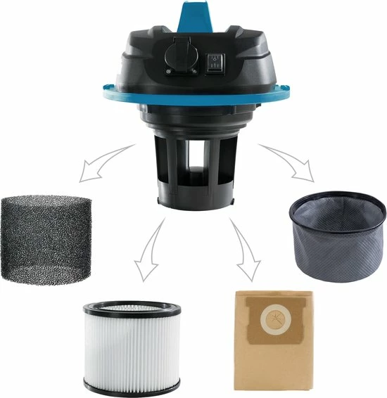 - 5in1 functie: Nat/droog/ashzuiger, blaasfunctie & extra stopcontact voor het aansluiten van elektrische apparaten
