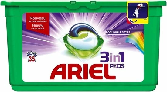 Let op: de laatste productie van de Ariel 3 in 1 Pods heeft 28 maanden geleden plaatsgevonden. Dit product behoort daarom tot het oude assortiment van Ariel Pods. Ten opzichte van de huidige, nieuwe Ariel All in 1 Pods, kan op de Ariel 3 in 1 Pods geen garantie worden gegeven over de kwaliteit. Bij de Ariel 3in1 Pods lost de filmlaag minder goed, waardoor het wassen op koude temperaturen niet het gewenste effect kan hebben. De Ariel All in 1 Pods heeft een betere formule, dat ook zorgt voor een schone was op koudere temperaturen.