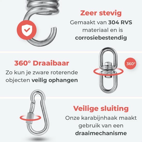 Bestel nu AVINT GOODS ophangsysteem voor het veilig ophangen van een bokszak, hangstoel, hangmat, schommel, enz…