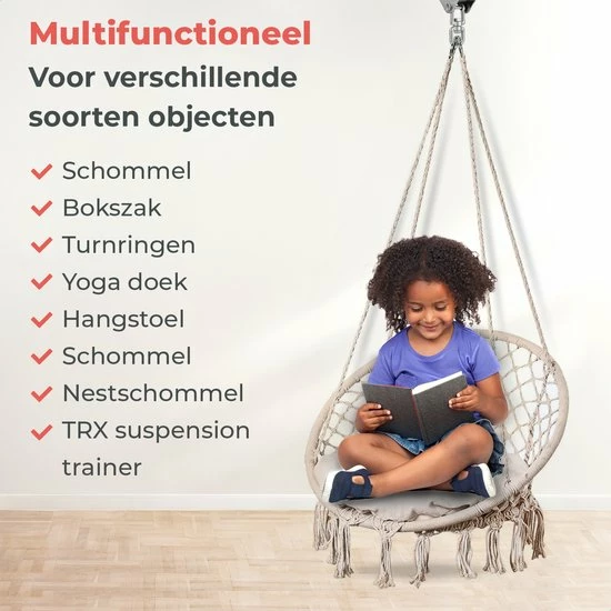 AVINT GOODS ophangsysteem is bijzonder flexibel in gebruik. Je kunt het gebruiken voor het ophangen van bokszakken, hangstoelen, hangmatten, schommels, en veel meer. Gebruik dit ophangsysteem als plafondbeugel en/of muurbeugel.