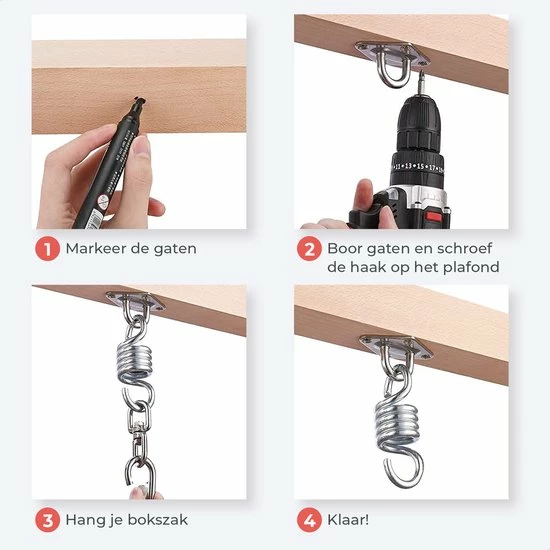 Deze plafondbeugel is volledig geschikt om een hele zware bokszak veilig aan een plafond op te hangen.