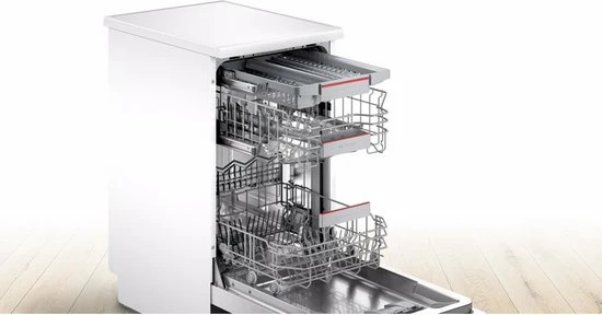 Via de HomeConnect app bedien je de Bosch SPS4EMW28E vaatwasser gemakkelijk op afstand. Ontvang berichten of zoek het juiste programma voor je vaat. Met de IntensiveZone functie wordt hardnekkig vuil beter verwijderd en met SpeedPerfect zorg je voor een korter programmaduur. De vaatwasser reinigt zichzelf met het MachineCare programma en rackMatic en Flex-korven zorgen voor nog meer flexibiliteit en ruimte.