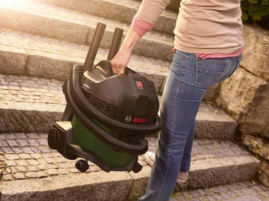 Nat en droog vuil maakt geen kans met de gebruikersvriendelijke Bosch UniversalVac 15 bouwstofzuiger. Hij is ideaal voor universeel gebruik en kan worden gebruikt voor het wegblazen van bladeren buiten, het schoonmaken van vloeren en tijdens DIY-toepassingen. Voor constant reinigen kan deze stofzuiger dankzij de flexibele universele adapter en de conische vorm rechtstreeks worden bevestigd op al het huidige elektrische gereedschap uit het Bosch segment Home & Garden en van diverse andere fabrikanten.