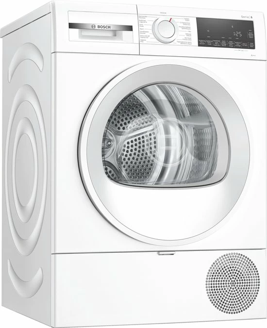 De Bosch WQG233DEFG warmtepompdroger zorgt met AutoDry ervoor, dat je wasgoed op hoge temperaturen niet beschadigd of krimpt. Met 8 kg kan je redelijk veel drogen in รฉรฉn keer en door het gebruik van het Extrasnel40 programma is je wasgoed in 40 minuten droog. De SenstiveDrying geeft een zacht resultaat zonder kreuken of kies voor de anti-kreukfase, 60 minuten na afloop van het programma. Met het grote LED-display is alles goed te overzien. Een afvoerslang wordt niet standaard meegeleverd bij dit product.
