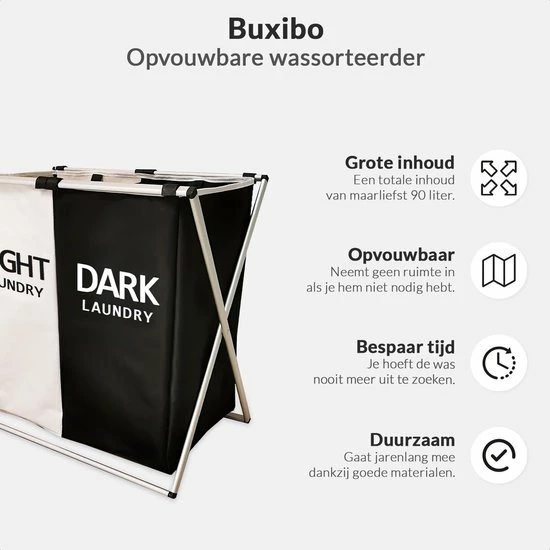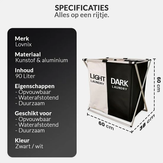 De twee verschillende vakken helpen je bij het voorsorteren van de was. Sorteer bijvoorbeeld op kleur, stof, temperatuur, persoon, of iets anders. Dit scheelt je zo de helft van het werk wanneer je een was gaat draaien. Daarnaast is de wasmand compact en makkelijk te verplaatsen door zijn lichte vormgeving.