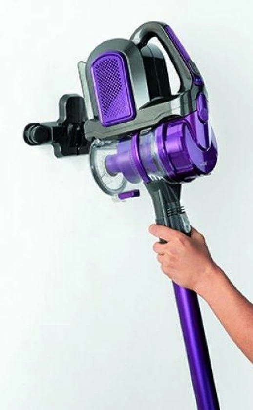 Clatronic BS 1307 A. Soort reiniging: Droog, Stofzuiger luchtfiltering: HEPA, Vuilafscheidingsmethode: Cyclonisch. Stofzuigercontainer type: Zakloos, Kleur van het product: Paars, Materiaal behuizing: Aluminium. LED-indicatoren: Bezig met opladen. Stroombron: Batterij/Accu, Looptijd: 30 min, Accu/Batterij voltage: 21,6 V