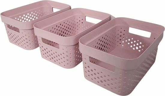 - Curver Infinity Dots Opbergbox – 4.5L – 3 stuks – Roze – Recycled Kunststof