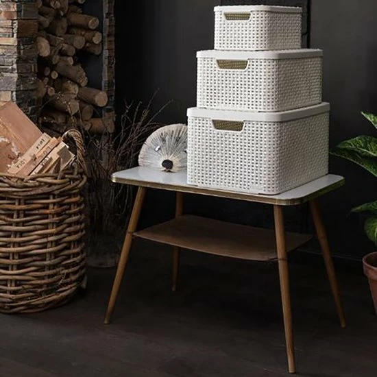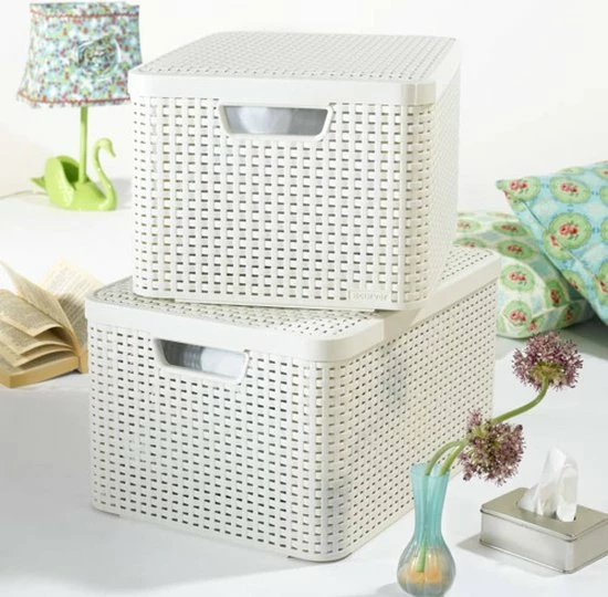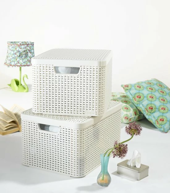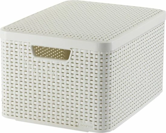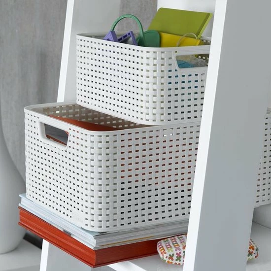 De Curver Style opbergmandjes zijn opbergproducten die gezien mogen worden. De mandjes zijn voorzien van een vlechtstructuur die lijkt op natuurlijke materialen. Ze hebben de uitstraling van riet maar de voordelen van kunststof: Eenvoudig te reinigen, goed te stapelen, voorzien van handgrepen en bestand tegen vocht. Door het deksel goed af te sluiten. Ideaal voor gebruik in de badkamer, woonkamer, kinderkamer of op kantoor. Daarnaast is de opbergdoos gemaakt van minstens 70% gerecycled materiaal.