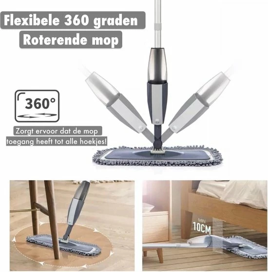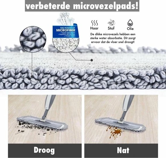 De spraymop word geleverd met 2 microvezel doeken die sterk absorberend zijn waardoor de vloer snel droogt!