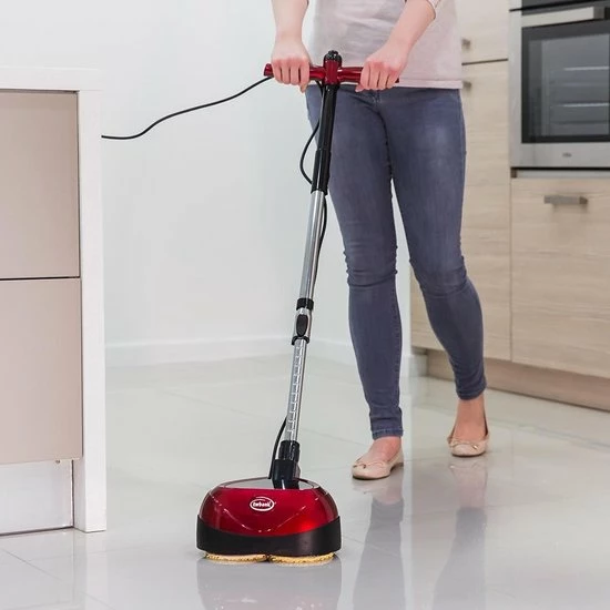 De Ewbank Boenmachine / Vloerpoetsmachine / Floor Polisher is een All-in-one vloerpoetsapparaat voor het reinigen, schrobben en polijsten van uw houten vloer, laminaat, PVC, kurk, vinyl, linoleum, en tegels als marmer en graniet binnenshuis. De Ewbank Floor polisher gebruik maakt van 2 contra-roterende schijven die draaien op 2.200 rpm waardoor de machine gemakkelijk op dezelfde plaats blijft en u niet druk hoeft te maken dat de machine spontaan een andere richting opgaat. Met de Floorboy XL wil het nog weleens gebeuren dat de machine tegen de muur aanstoot, met de Ewbank vloerpoetsmachine is dit verleden tijd. Wordt standaard geleverd met 3 paar herbruikbare microvezel reinigings- en polijstkussens om uw vloer mooi te houden.