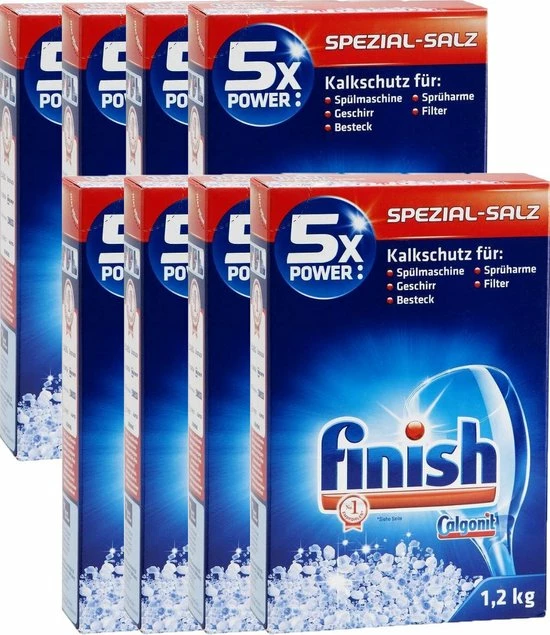 Finish vaatwaszoutbr /Speciaal zout voor de afwasmachine. Beschermt afwas en afwasmachine van calciumafzettingen! Kalk in kraanwater kan de werking van uw vaatwasser zeer snel verminderen. Om kalkafzettingen te voorkomen, zijn de afwasmiddelen uitgerust met een waterverzachtersysteem.br /Maar met de Finish vaatwaszout beschermt zowel vaatwasser, filters als servies en bestek. Het vaatwaszout verzacht je water, waardoor het effect van je reiniger wordt verbeterd. De finish vaatwaszout bestrijdt afzettingen en watervlekken.
