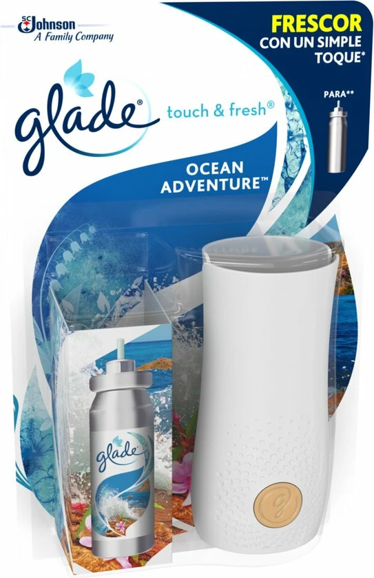 Glade Touch & fresh ocean adventure geurt je huis met slechts een keer drukken met de verfrissende geur van de ocean.Ervaar frisheid met touch & freshMet handige verplaatsbare houder (ophangen/neerzetten)Na te vullen met alle Glade minispray geurenGeur verrijkt met essentile olin