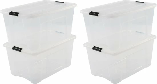 IRIS Topbox Opbergbox – 45L – 4 stuks – Transparant/Zwart