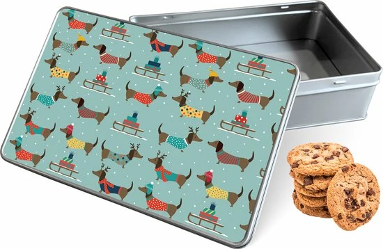 Koektrommel Winterse Teckels – Rechthoek 20x13x5cm