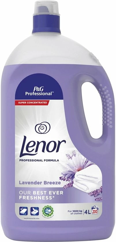 Geef je kleding een langdurige frisheid en zachtheid met de wasverzachter van Lenor! De formule beschermt de kleren tegen slijtage zodat je er langer plezier van hebt en is geschikt voor witte en gekleurde was. De bidon wasverzachter met aroma lavender breeze heeft een inhoud van 4L.