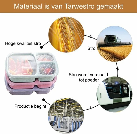 Een lunchbox en magnetron bakje in 1 met deksel. Deze zijn BPA vrij en gemaakt van tarwestro!