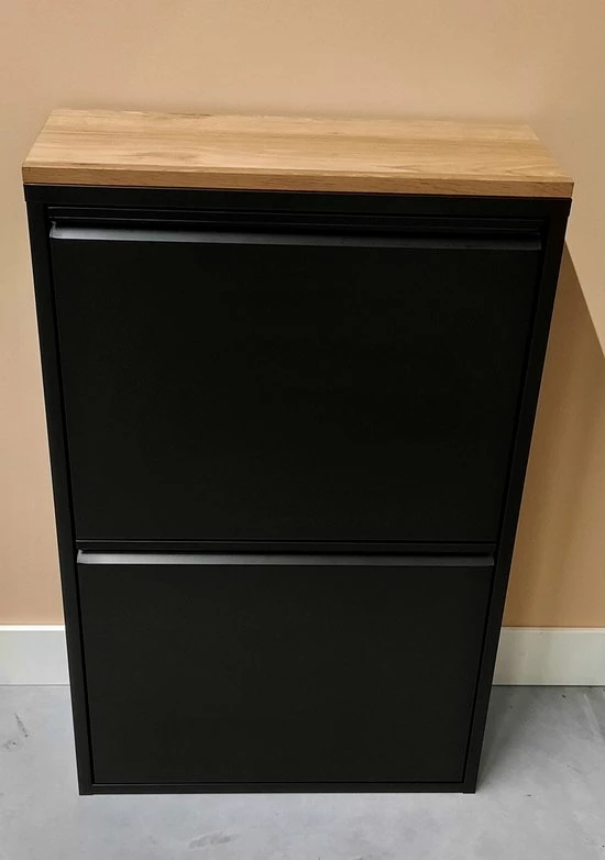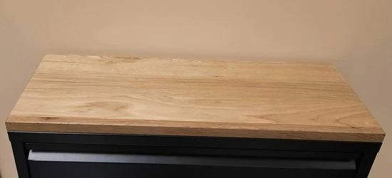 - Bovenzijde afgewerkt met een massief eiken paneel voorzien van een velling en invisible lak. Het hout is dus beschermd.