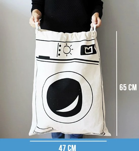 Allernieuwste Waszak met Wasmachine Print – Wasgoed Opbergtas met Trekkoord – Badkamer Was Zak – Laundry Bag – wit-zwart – 65 x 47 cm