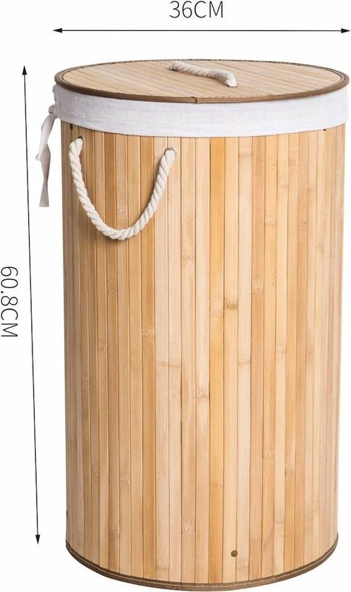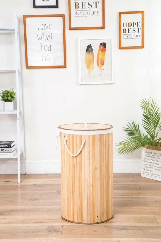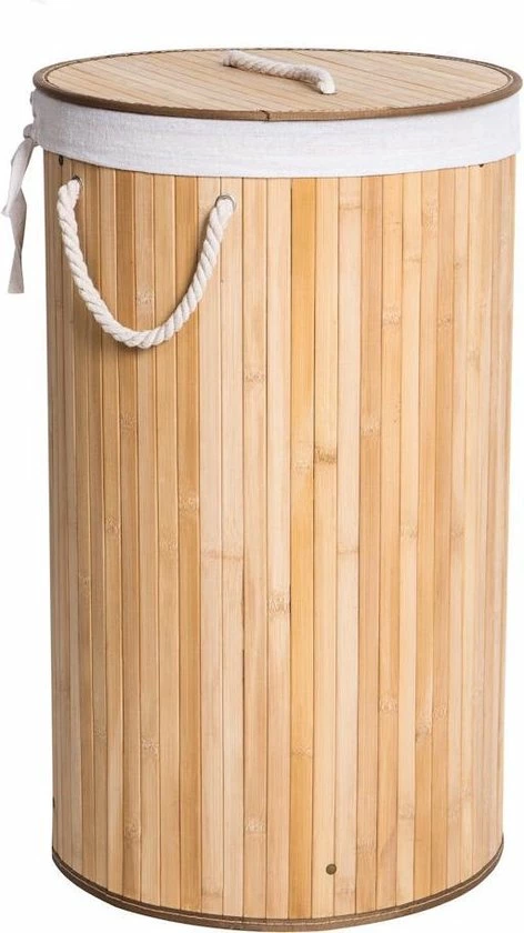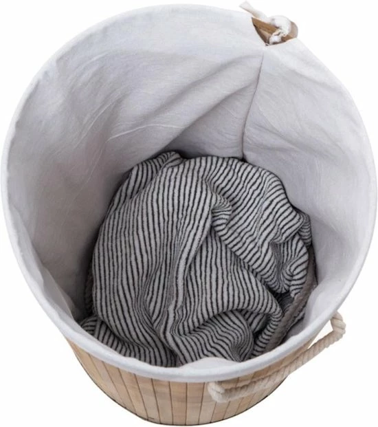 Deze grote ronde wasmand van bamboe met 1 groot vak voor in jouw badkamer of was ruimte. Bamboe onderscheidt zich naast zijn geweldige uitstraling, vooral door zijn onderhoudsvriendelijke, stevige en vochtresistente eigenschappen. Deze wasmand met deksel en groot vak heeft een verwijderbare waszak. Zo berg je in deze wasmand eenvoudig al jouw vieze was en kleding op.