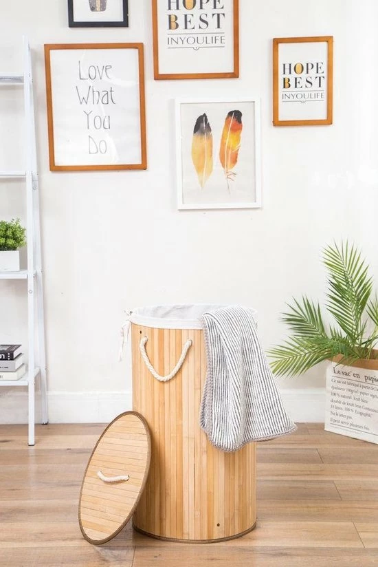 Bamboe hout is ideaal voor gebruik in de badkamer. Het is van nature goed bestand tegen water. Het is dus niet erg dat deze wasmand nat wordt. Wel zo handig bij gebruik in de badkamer.