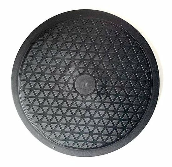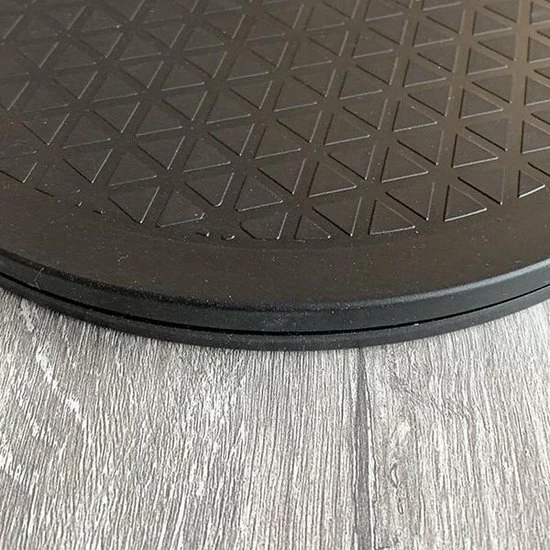 Dit draaiplateau is universeel toepasbaar. De doorsnede van het plateau is 25 cm en in de kleur zwart. Het plateau is belastbaar tot maximaal 100 kg.