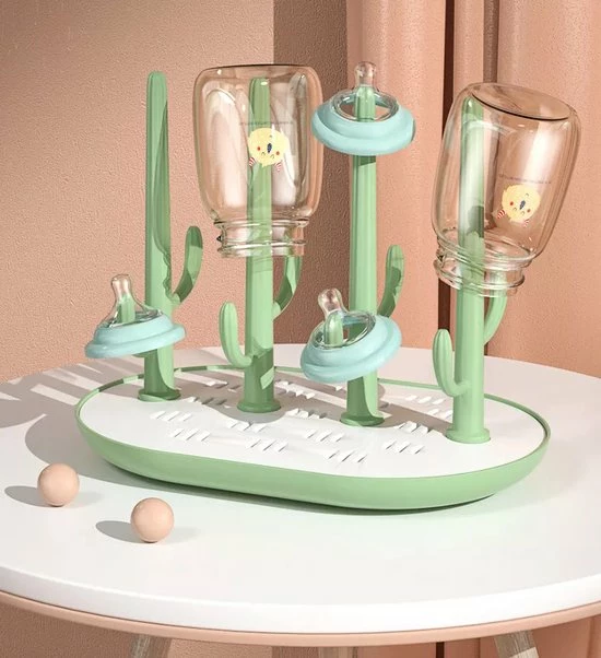 Op het droogrek passen ongeveer acht flessen en alle bijbehorende accessoires en spenen. In het droogrek zit een ingebouwd reservoir die al het vocht opvangt en voorkomt dat het aanrecht nat wordt. Na gebruik kan je het rek weer eenvoudig invouwen en opbergen.