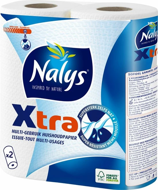 | Verpakkingsinhoud | 2, rollen, Nalys, Xtra, keukenpapier |