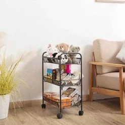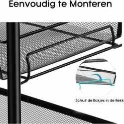 Goedkoop 🔔 Buxibo Opbergrek 3 Laags Op Wieltjes Met Vakken – Keukentrolley Op Wielen – Badkamer/Keuken/Kamer Opbergrek – Nisrek – 45cmx37cmx63cm – Zwart 🔥