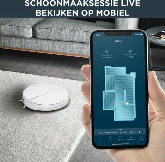 - gyroscoop technologie en infraroodsensoren om je huis nauwkeurig te dekken volgens een heel logisch traject