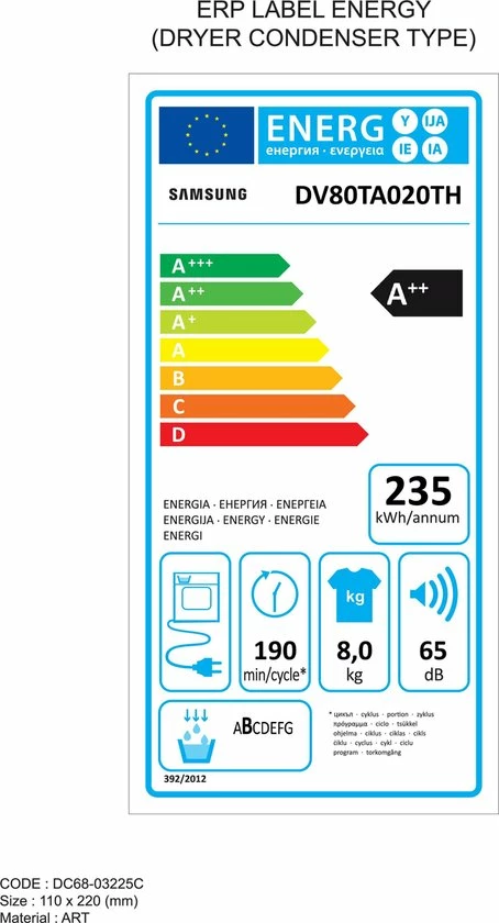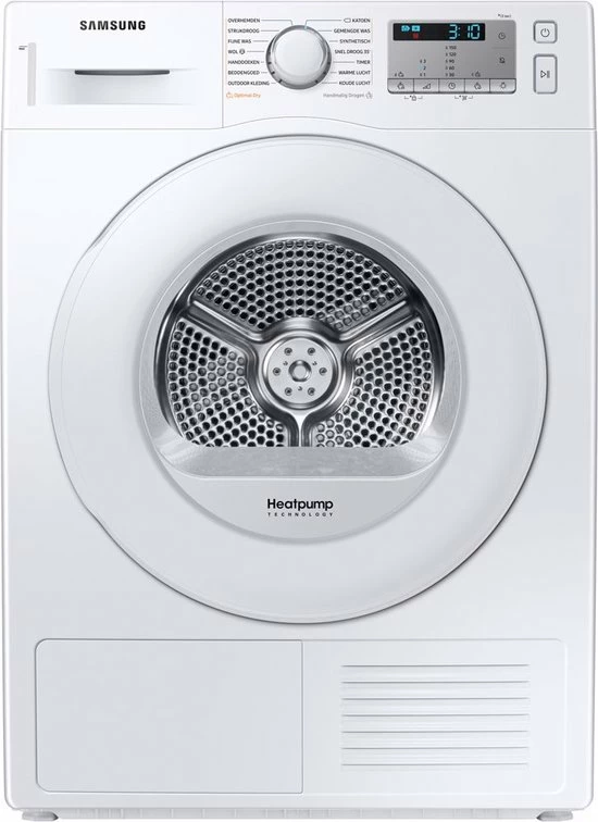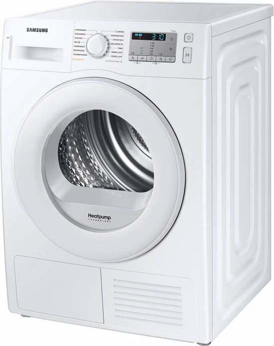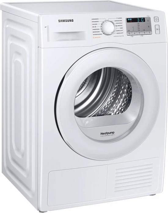 Dankzij de vochtigheidssensoren van de OptimalDry, wordt de was in de Samsung DV80TA020TH/EN warmtepompdroger voortdurend gemeten voor het beste resultaat. De Diamond trommel voorkomt dat kleding beschadigd en gaat voorzichtig om met wasgoed. Zijn er problemen met de droger? stel een diagnose in door middel van de SmartCheck. Snel droge was nodig? kies dan het QuickDry 35′ programma. Stof en vuil wordt nu beter opgevangen in het 2-in-1 filter voor een schoner resultaat.