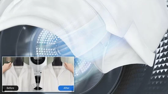 De unieke vormgeving van de Diamond Drum-trommel gaat voorzichtig om met de was en verminderd kreukvorming. Dat komt door de gladde randen in de vorm van diamanten en de verzonken gaten die voorkomen dat kleding blijft haken en beschadigt.