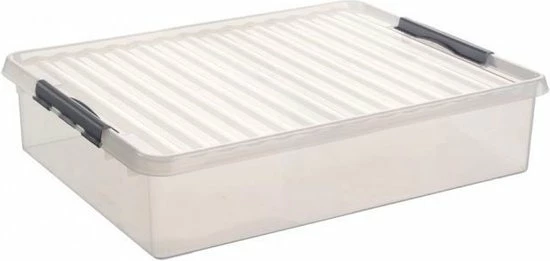 De Q-line 60L opbergbox van Sunware is een zeer praktische rechthoekige, lage opbergbox voor het vocht- en stofvrij opbergen van diverse spullen. Deze box is door zijn slimme langwerpige design makkelijk onder het bed te schuiven. Ideaal dus om je (oude) kleding, lakens en handdoeken in op te bergen zonder gevaar voor motten. Toch is deze box ook prima geschikt om allerhande huishoudelijke spullen in op te bergen zoals belangrijke papieren, speelgoed of bijvoorbeeld fotoboeken en leesboeken.