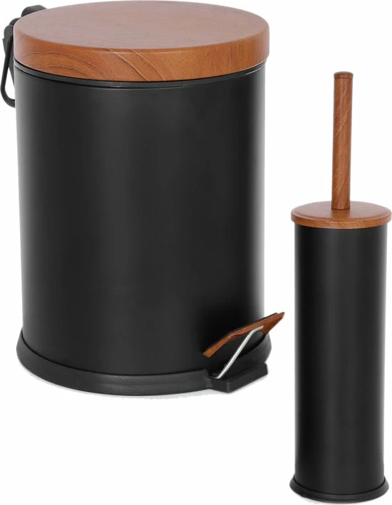 Beste Pirce 🔥 Tiss® – Pedal Bin Classic Pedaalemmer – 2-delig- Badkamer En Toilet- 5 L – Prullebank – Zwart / Bruin – Metaal / Bamboe – Rond 😍