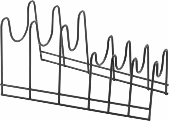 Pannen kun je gemakkelijk opbergen door de pannen van groot naar klein in elkaar te stapelen. Maar waar laat je dan je deksels? Een pannendekselrek is daarvoor de beste oplossing. In deze variant van Metaltex kun je zes pannendeksels opbergen. Maar heb je liever een standaard voor je borden en je snijplanken, dan is dit rek daar ook voor geschikt. Het pannendekselrek is zo ontworpen dat deze perfect in een keukenkastje past, maar natuurlijk kun je de organizer β vooral door het trendy ontwerp β ook op het aanrecht kwijt. In de Black Edition van het merk Metaltex kun je nog meer keukenorganizers vinden in de gave matzwarte kleur.