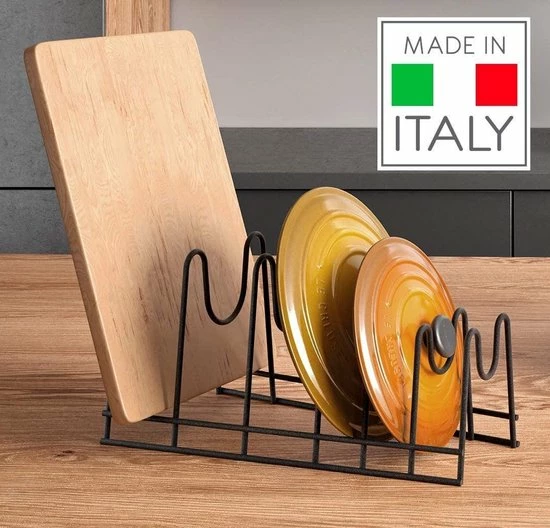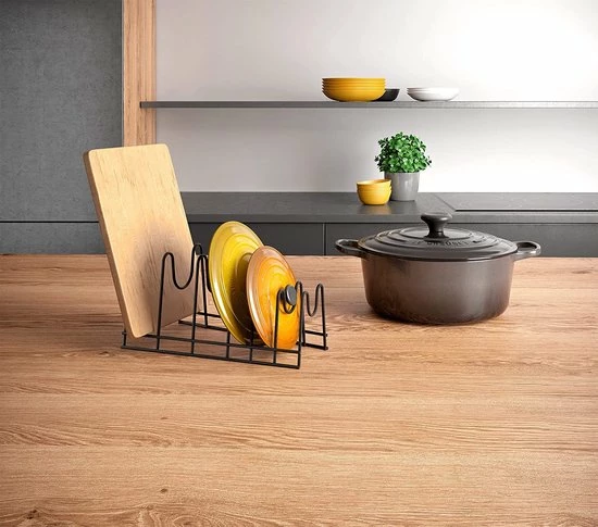 Modern en stijlvol pannendekselrek met plek voor zes pannendeksels. Past perfect in keukenkastjes en is ook geschikt voor borden en snijplanken.
