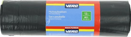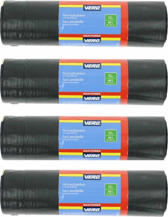 4 Rollen met ieder 12 vuilniszakken met een inhoud van 60 liter. De zwarte huisvuilzakken beschikken over een handige trekbandsluiting. Hierdoor zijn de zakken gemakkelijk in gebruik en eenvoudig te sluiten.