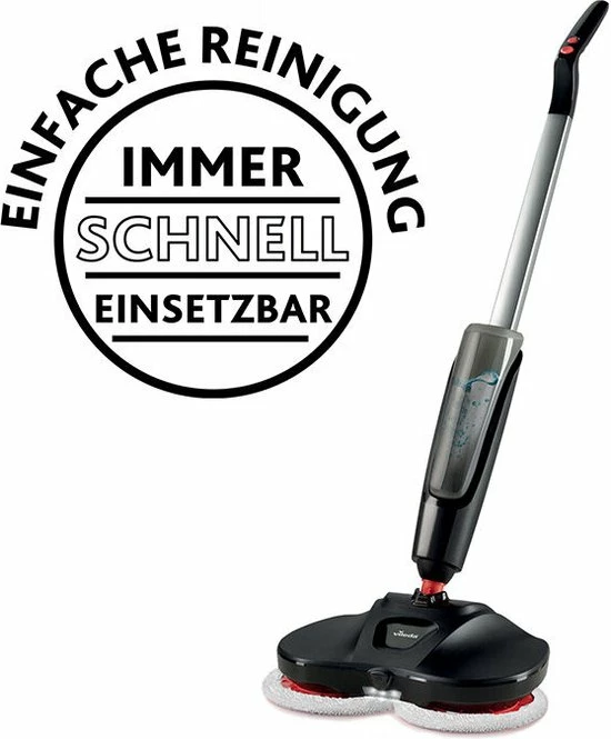 Wilt u uw vloeren snel en efficiรซnt tegelijk reinigen? Onze nieuwe elektrische sproeidweil helpt je om je huis moeiteloos schoon te houden. De twee tegengesteld draaiende pads verwijderen het vuil voorzichtig van je vloer. Voorwaarts draaien maakt vegen gemakkelijker en verbetert de reinigingsprestaties. Met het flexibele draaischarnier en het slanke productdesign van de elektrische vloerwisser wordt het hanteren kinderspel. Hierdoor kom je gemakkelijk in alle hoeken en dankzij de geringe hoogte van de mopkop reinig je ook gemakkelijk je vloeren onder meubels.