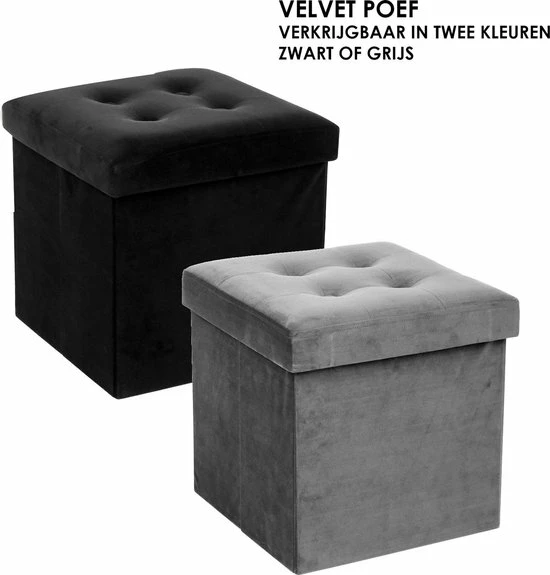 Opvouwbare Opberg Poef – Velvet – Zwart – 38 x 38cm